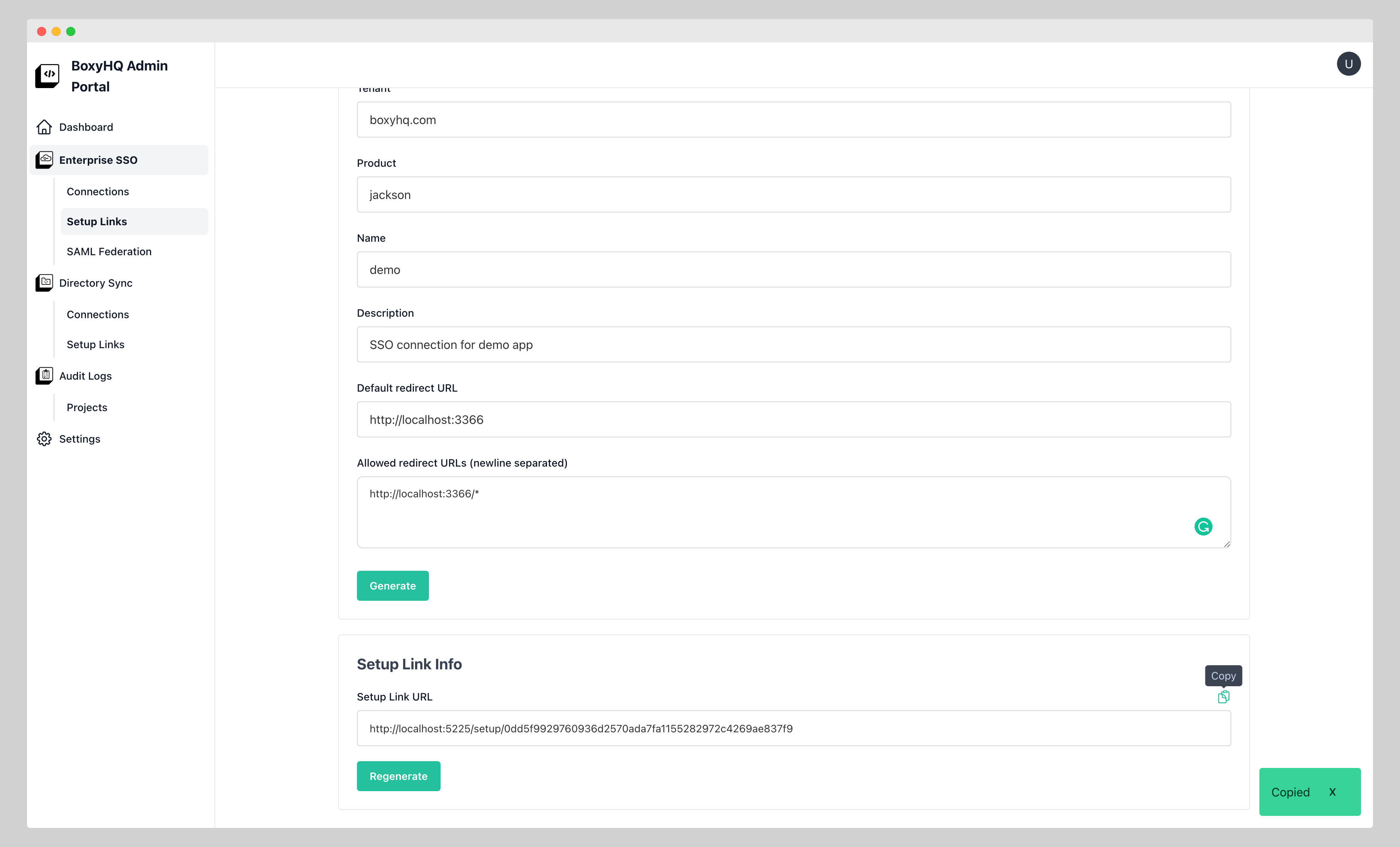As you can see that setup link makes it super easy & safe to create SSO Connections.