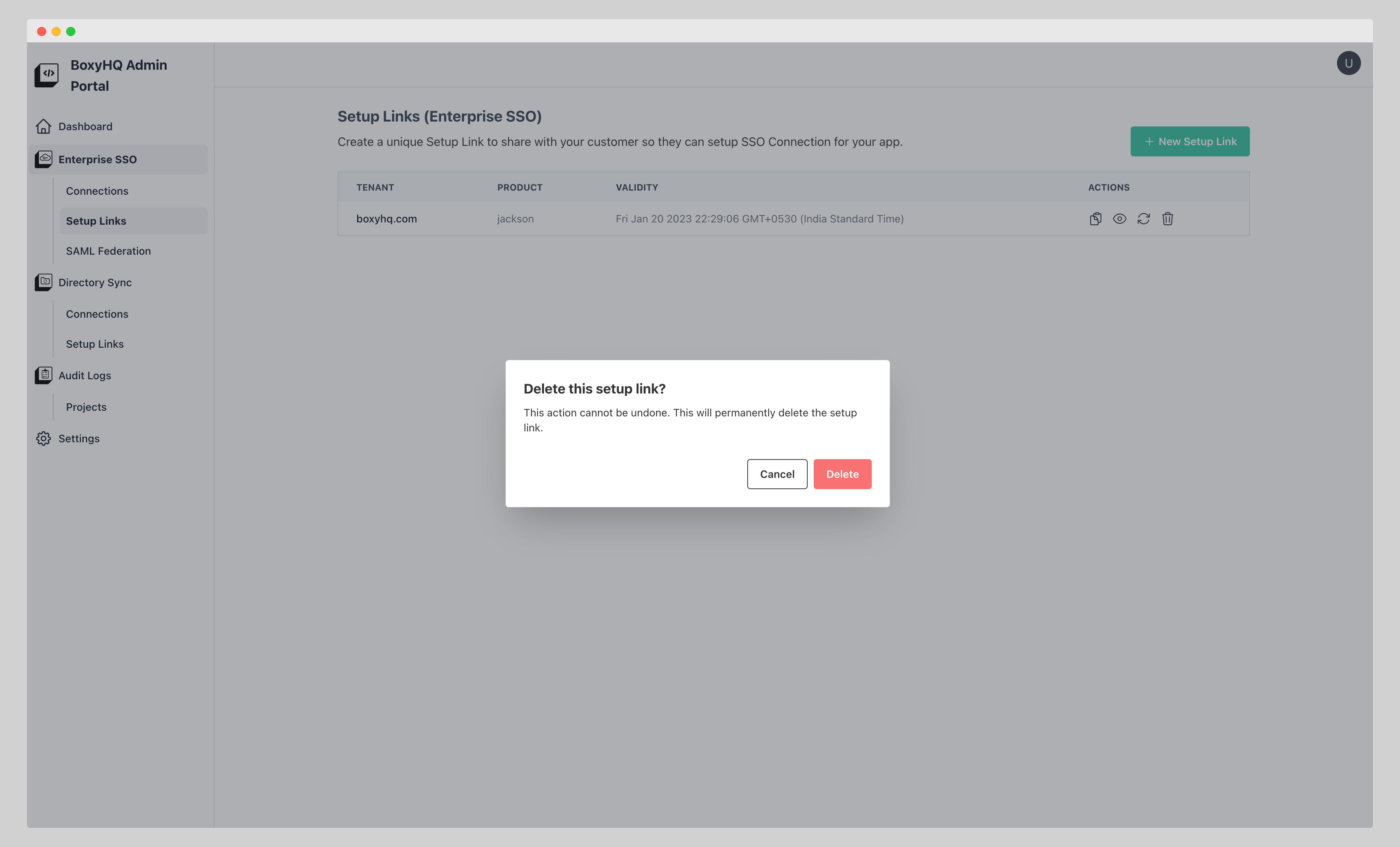 The Setup link is used to create a shareable link that can be used to create an SSO Connection without exposing any sensitive information. Let's go through the steps to create a new Setup link